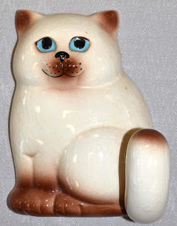 She loved cats, and had quite a collection of figurines as well as three live cats. When she succumbed to cancer in 2009, we temporarily adopted her three cats and her sons decoded to bequeath a selection of her cat figurines to us as well. I wish I knew the stories these kitties tell - where did each come from? Were they gifts or pieces Laura chose? Other than the blue ceramic cat I picked up for her in Mexico, these cat tales are unknown.